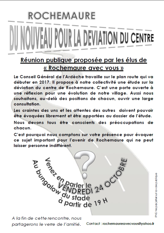 Dans le cadre de son futur schéma d'aménagement routier, le Conseil Général a proposé aux élus de Rochemaure de lancer une ETUDE sur une éventuelle déviation du centre de Rochemaure.